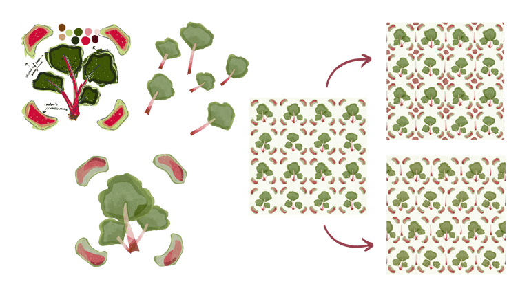 This project was inspired by the colours in rhubarb which was picked at my grandad’s allotment.